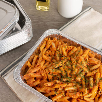 Store large quantities of food in these 9″x13″ aluminum pans. If you’re preparing for a dinner ahead of time, conveniently freeze and then reheat food in this pan. (Lids included)