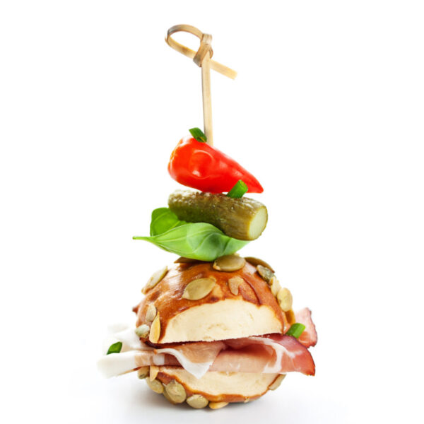 Complete the presentation of sliders or other stacked food combos with a neat bamboo pick. These bamboo picks hold food together while enhancing the plating of a dish.