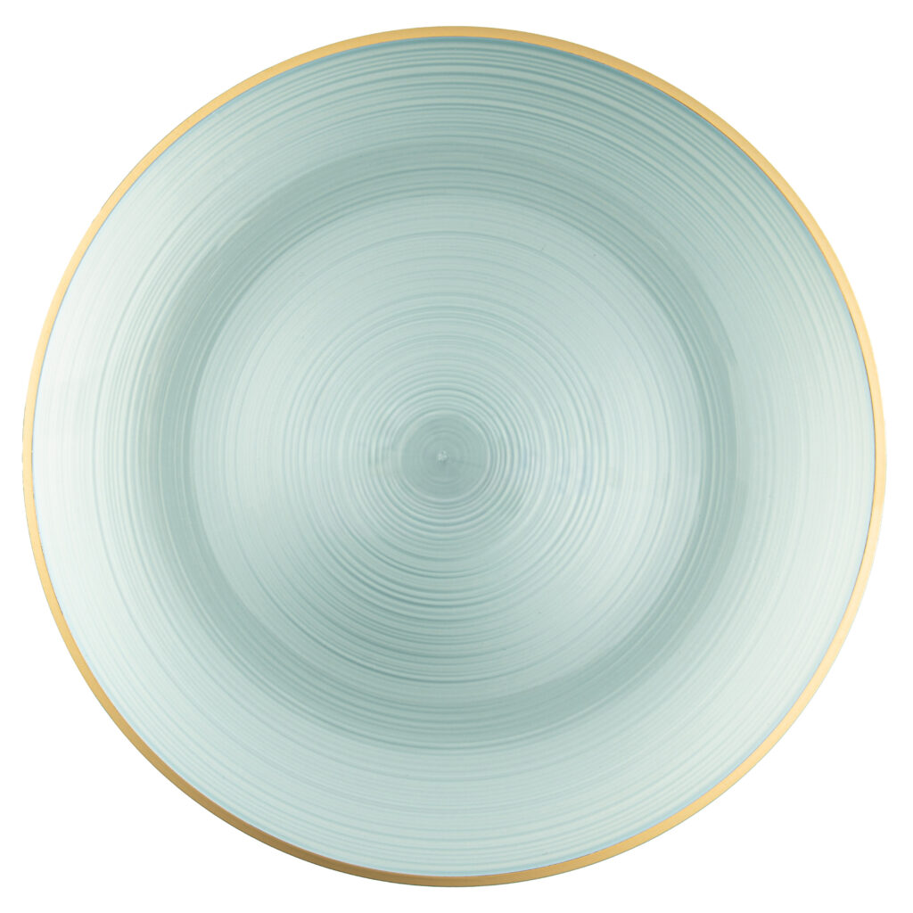 Chargers 13″ Crystal Pearl Blue/Gold Rim (4 count)