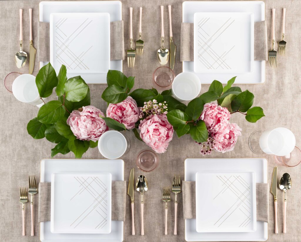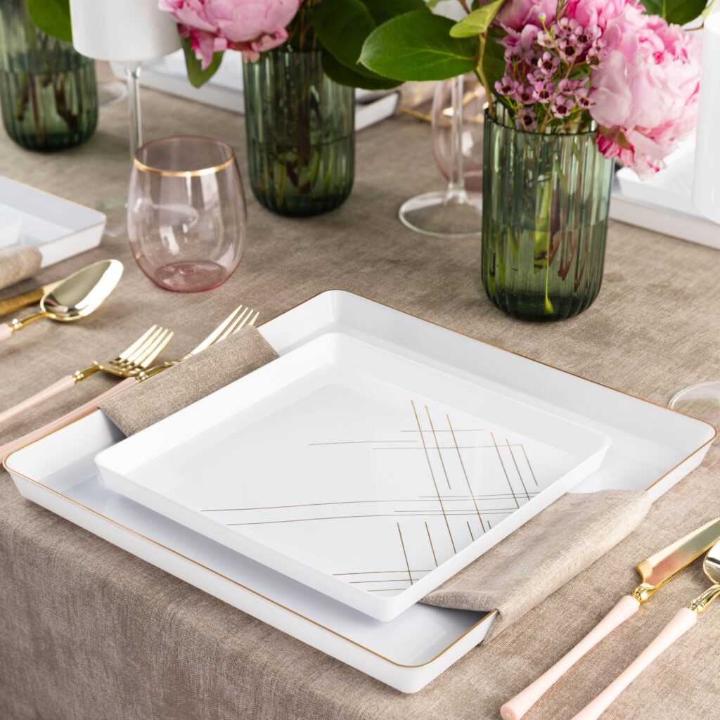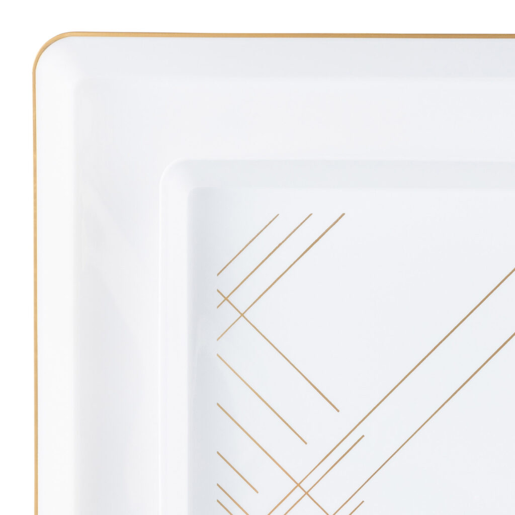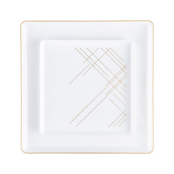 Make a statement at your next gathering with our Geometric Square Plates Collection. These lightweight and disposable plates are not only practical, but also stylish with their modern white and gold geometric patterns. Your guests will be impressed by the attention to detail!