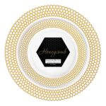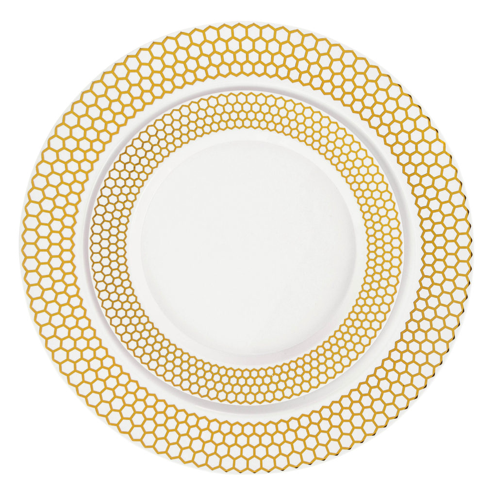 For an extraordinary event, ordinary dinnerware won’t do. The Honeycomb Collection is made of fine white hard plastic, with a sleek honeycomb border, setting your party apart from standard. You like being unique. These plates are as unique as you.