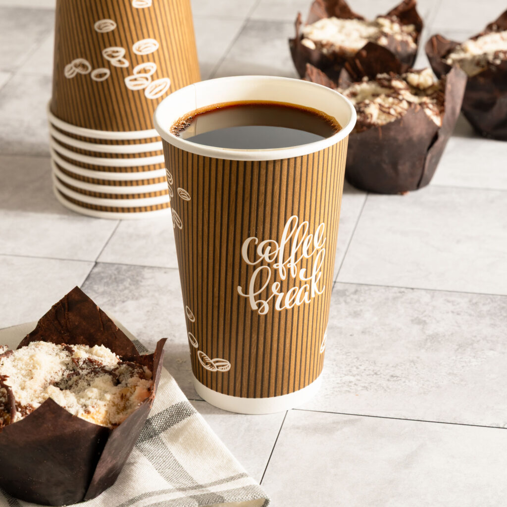 These printed hot cups are sturdy and functional for everyday use. They’re also most practical for coffee stations at kiosks, concession stands or convenience stores.