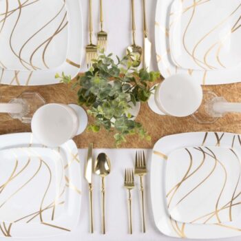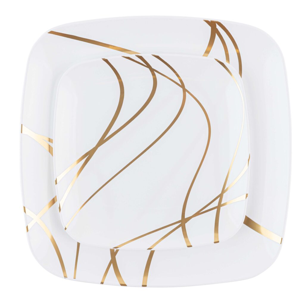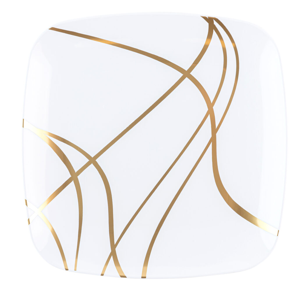 The sharp gold design adds a perfect modern touch to this classic square plate! Enhance your table with the impulse collection.