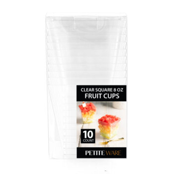 Serve your guests a refreshing snack by filling these clear plastic cups with assorted fruit and cream. The square cut design of these cups is appropriate for restaurant meals and elegant catered events.