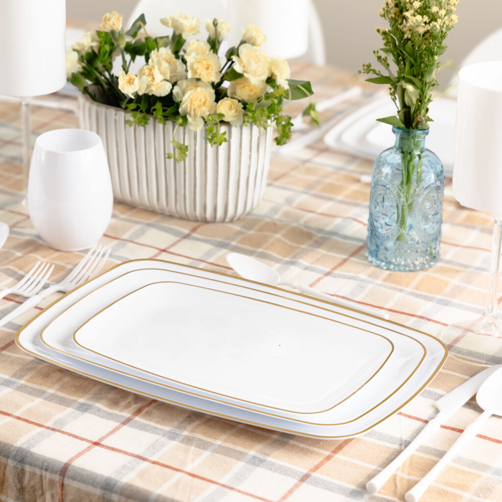 Organic Rectangle White/Gold Rim