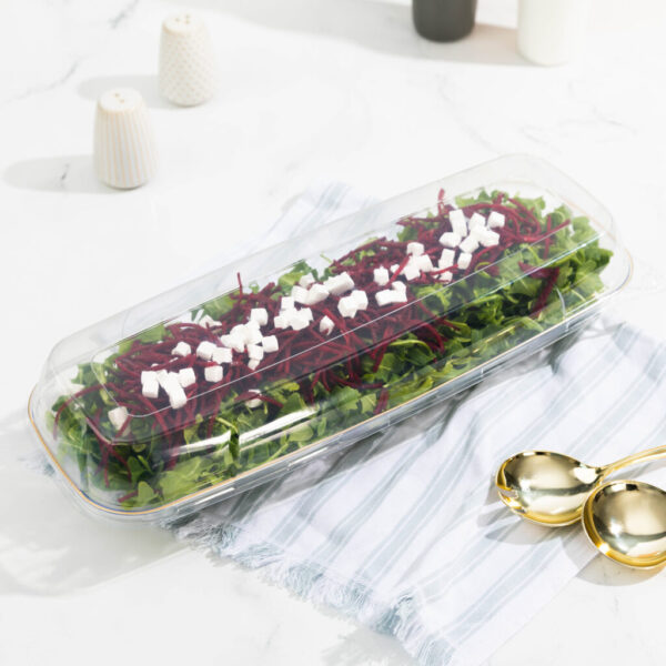 Organic Salad Bowl 76oz Rectangle 17.5″ Clear/Gold Rim