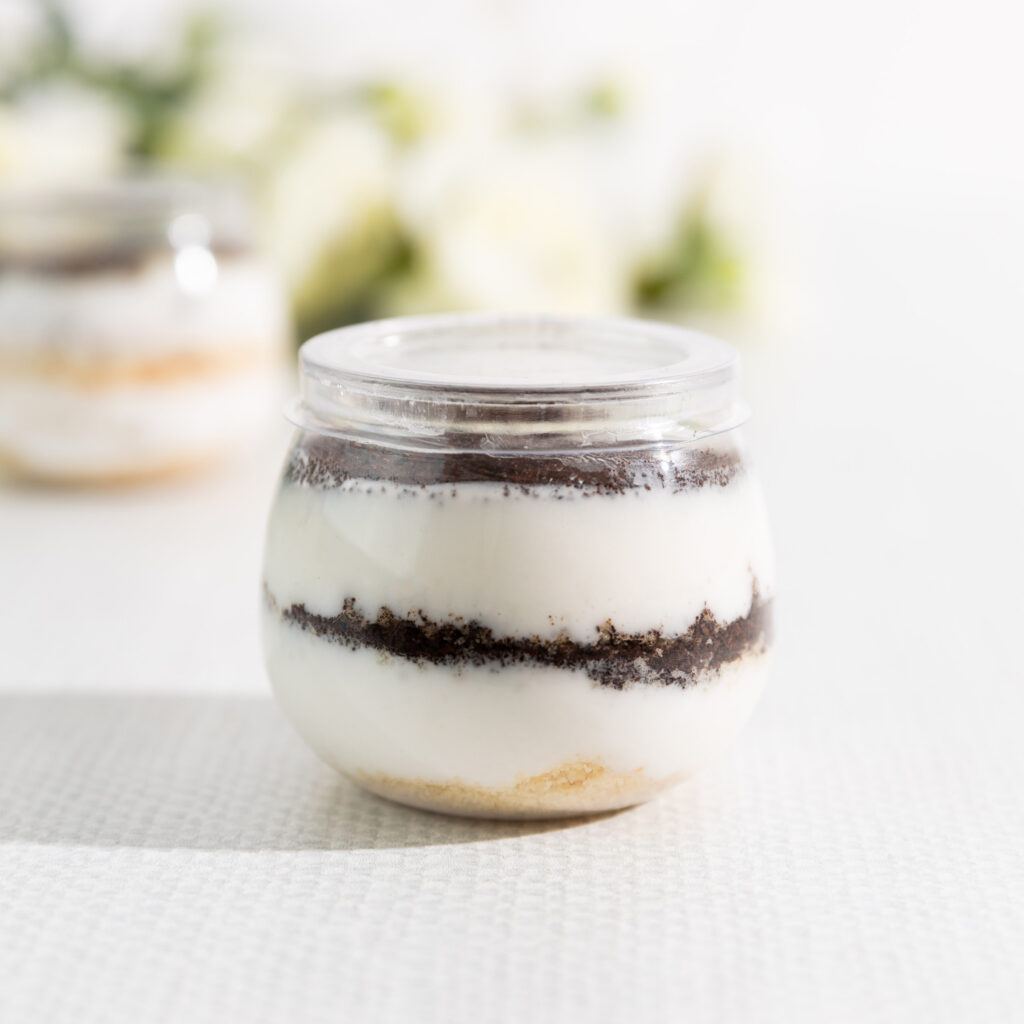 An adorable new round shape with a convenient lid – enhance your party setup with these beautiful mousse cups!
