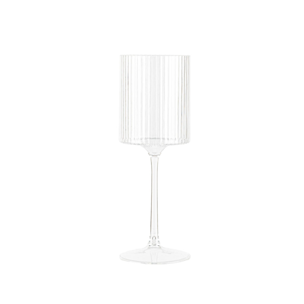 A modern take on a classic wine glass. This square ribbed design adds texture and shine, catching the light beautifully while offering a comfortable, balanced hold—perfect for everyday sipping or elegant entertaining.