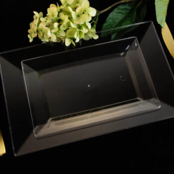 Hosting a formal dinner or catered event? With the straight lines and modern simplicity of these oblong hard plastic plates and bowls, Splendid Dinnerware lends a neat, crisp look to a tablescape, a perfect choice for high end dining.