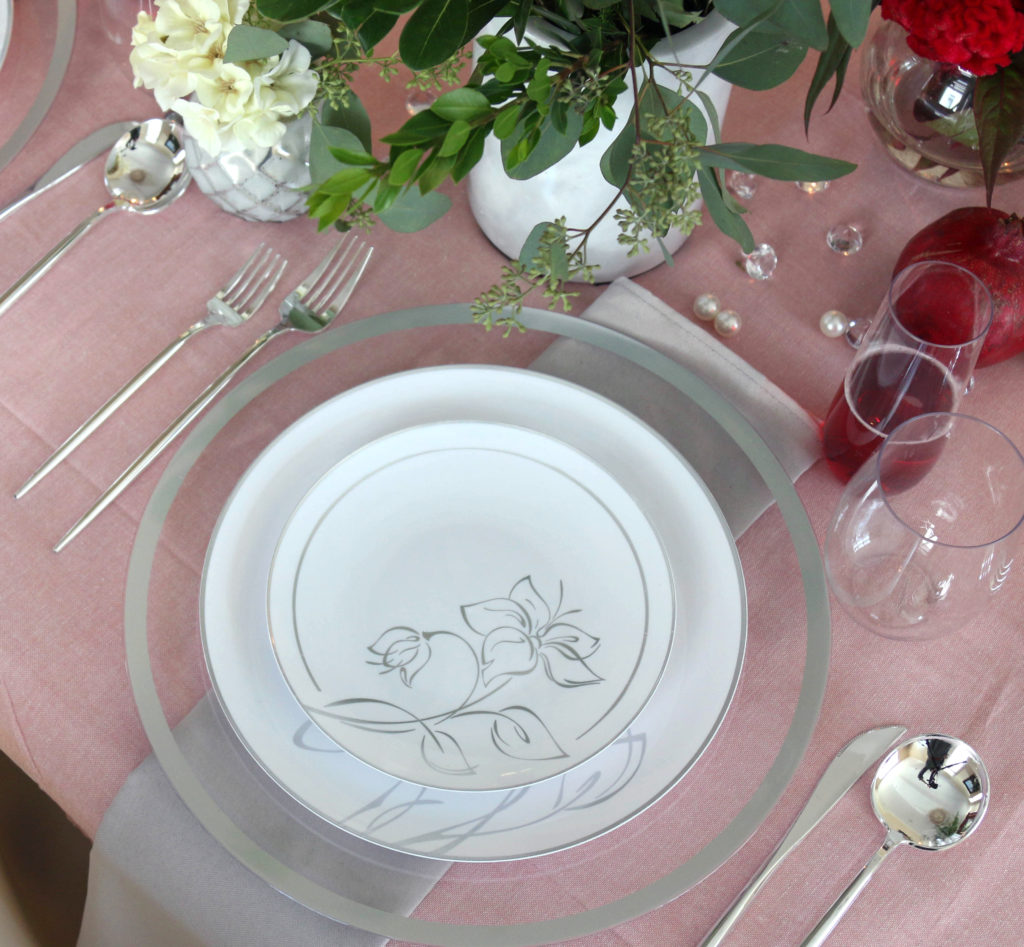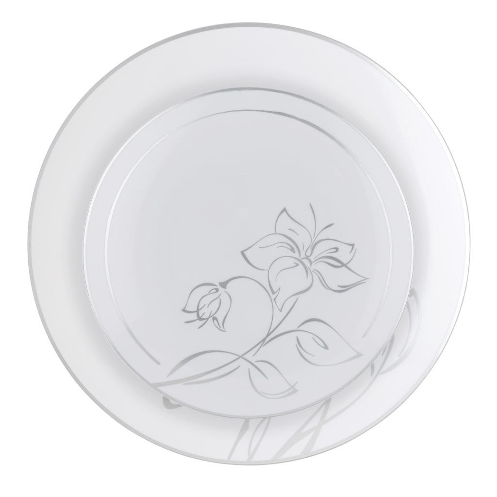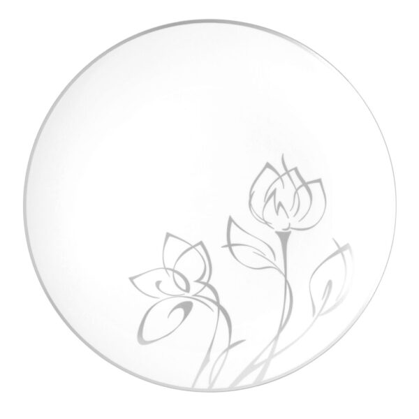 These plates offer a bit of silver glamour for your classic table-scape. The design is soft and versatile, making the Silver Floral a great collection to stock up on!