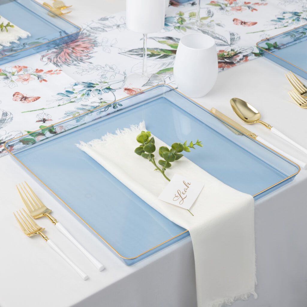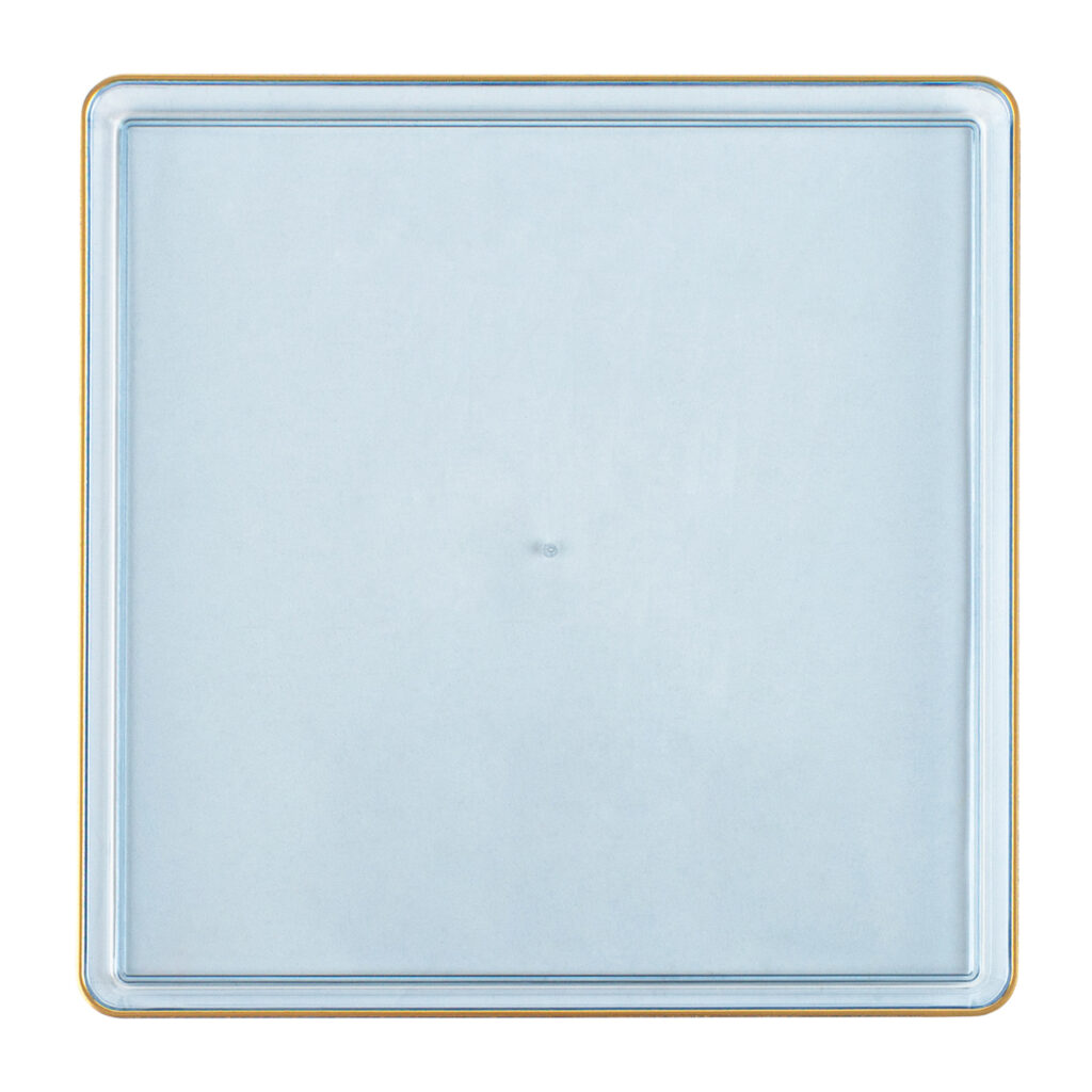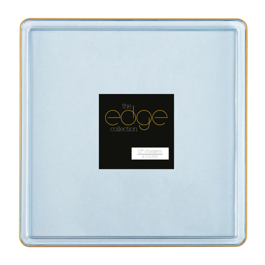 Square Edge 13″ Chargers Blue Transparent/Gold Rim (4 Count)